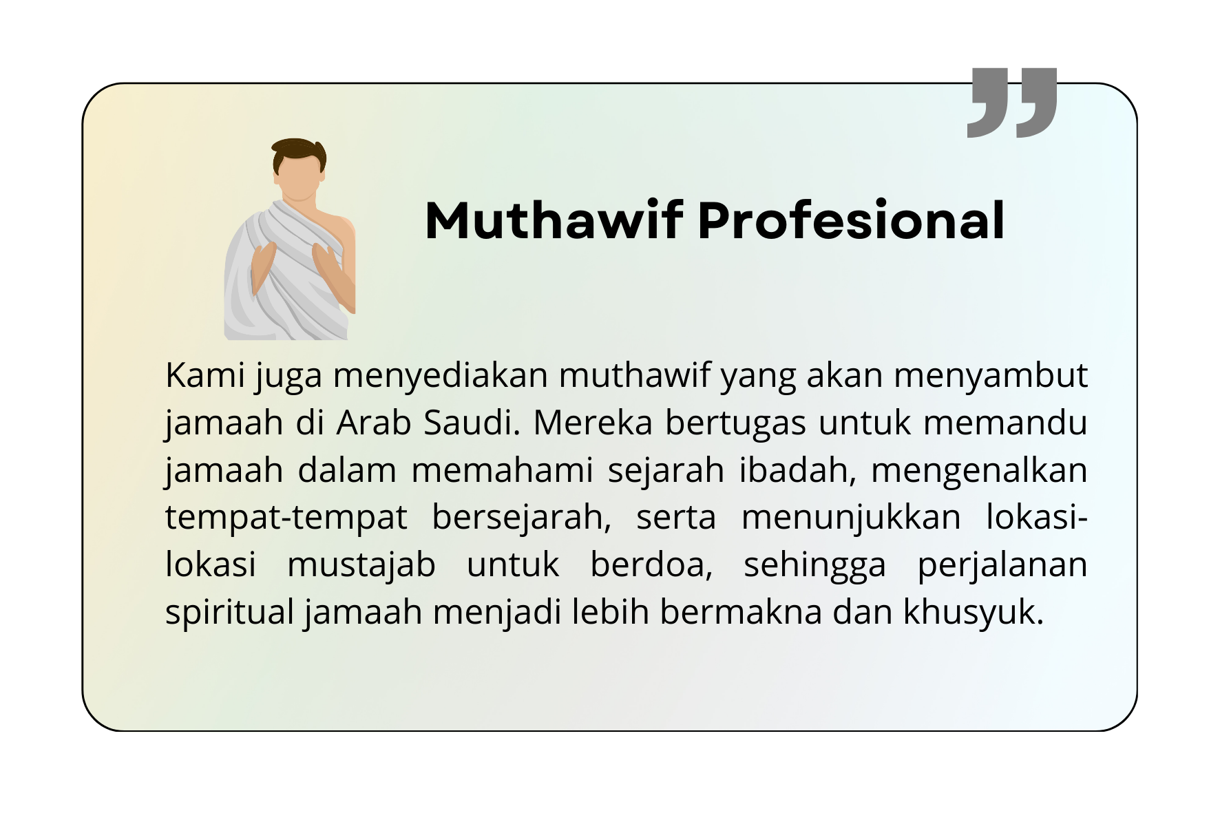 Oleh karena itu, kepercayaan dan kepuasan jamaah adalah prioritas utama kami. Kami siap mendampingi Anda dari persiapan keberangkatan hingga kepulangan, sehingga Anda dapat fokus menjalankan ibadah dengan hati yang tenang dan khusyuk.